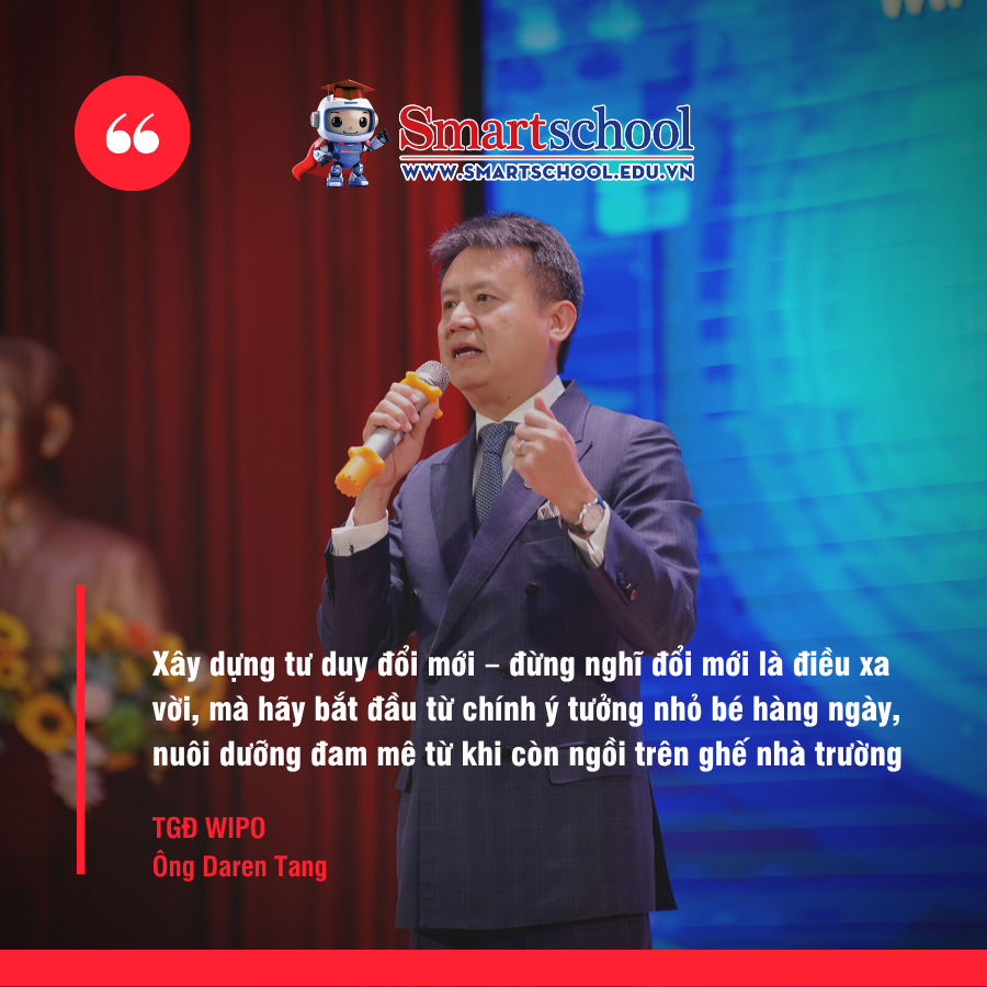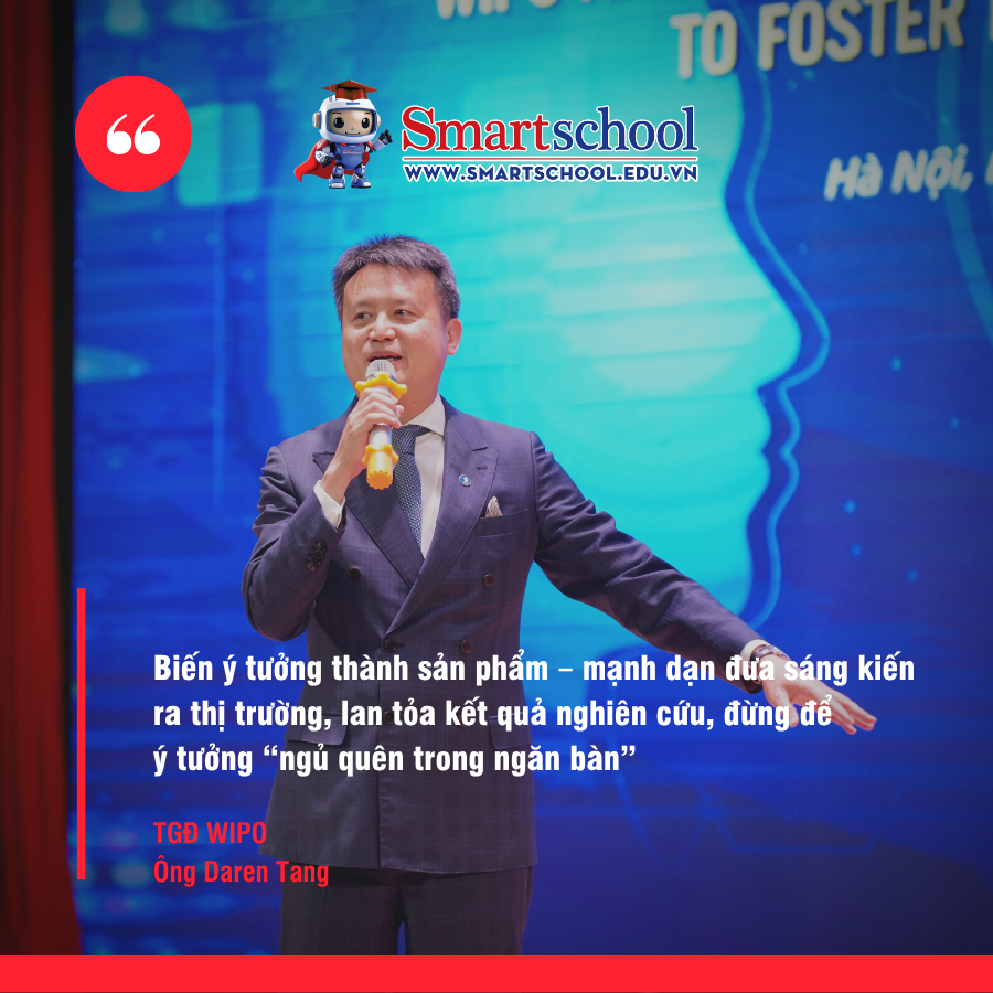 Đó không chỉ là những lời động viên, mà là những định hướng chiến lược được đúc kết từ kinh nghiệm dẫn dắt sự sáng tạo trên toàn cầu. Hãy cùng Smartschool “giải mã” 3 lời khuyên vàng mà ông Daren Tang đã gửi gắm đến các bạn trẻ Việt Nam nhé!