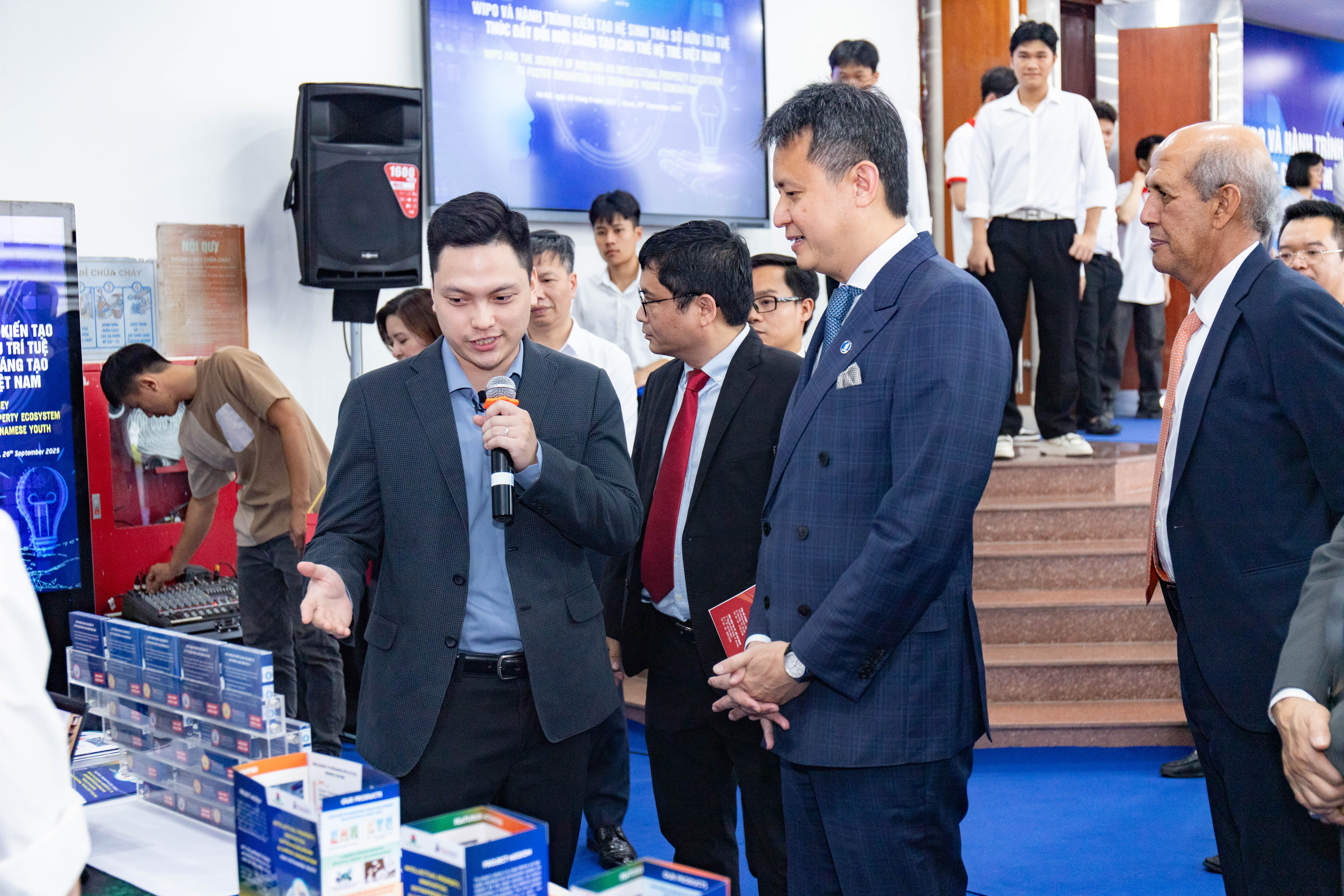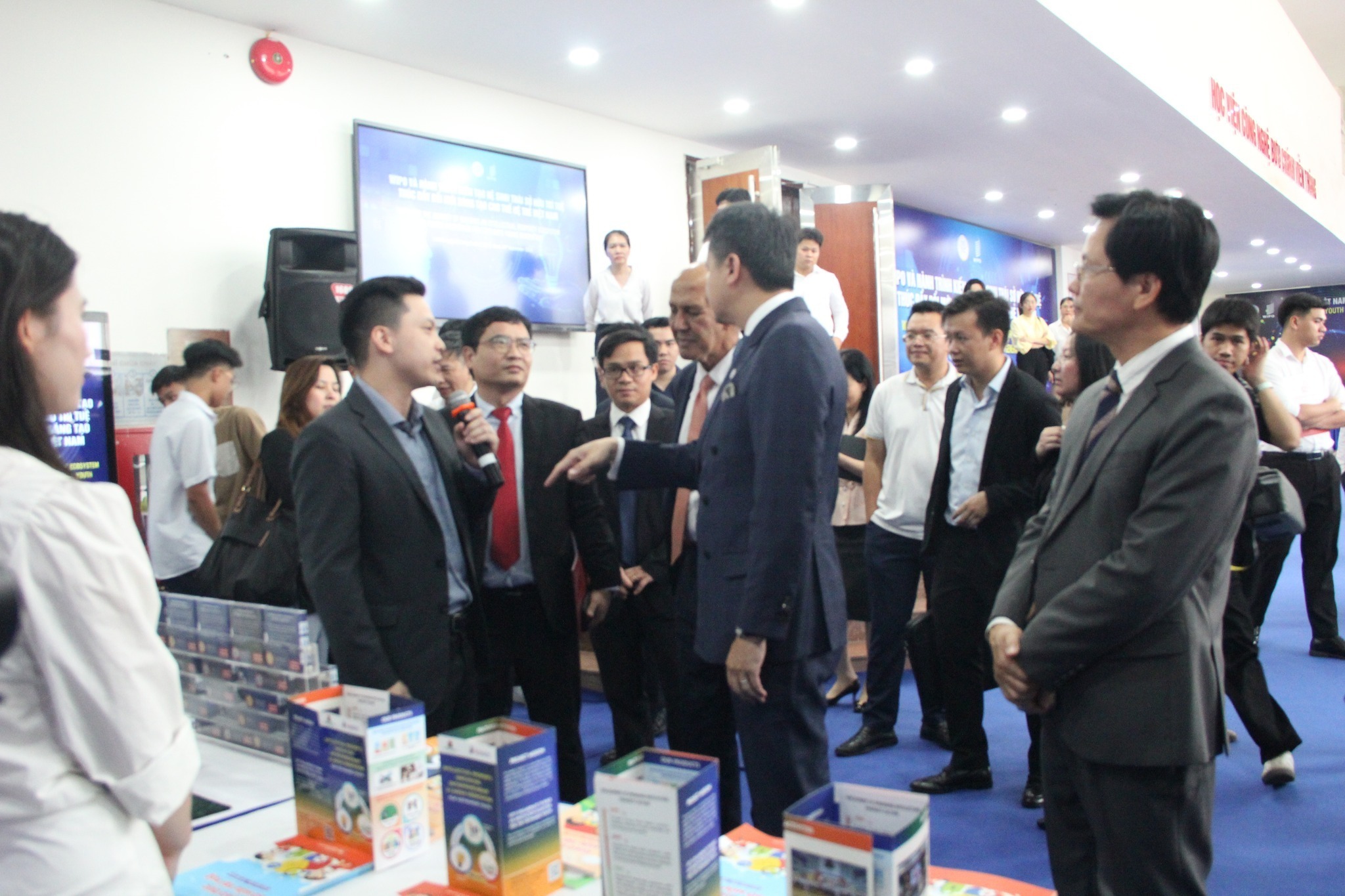 Trong thời gian tham quan triển lãm, ông Trịnh Thành Trung – Tổng Giám đốc Smartschool – đã có những chia sẻ quý báu và đầy ý nghĩa với ông Daren Tang – Tổng Giám đốc WIPO.