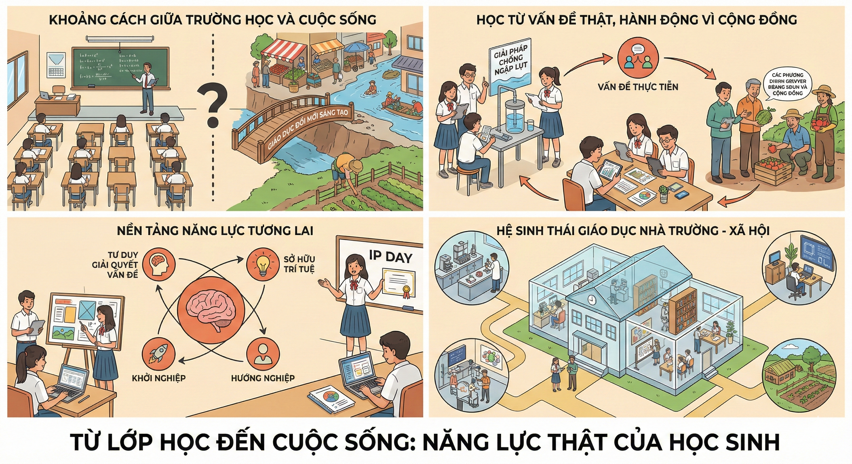 Trong nhiều năm, giáo dục phổ thông Việt Nam đã nỗ lực chuyển mình từ truyền thụ kiến thức sang phát triển năng lực. Tuy nhiên, một câu hỏi lớn vẫn còn bỏ ngỏ: Liệu những gì học sinh học trong lớp có thực sự theo các em ra ngoài cuộc sống? Khoảng cách giữa […]